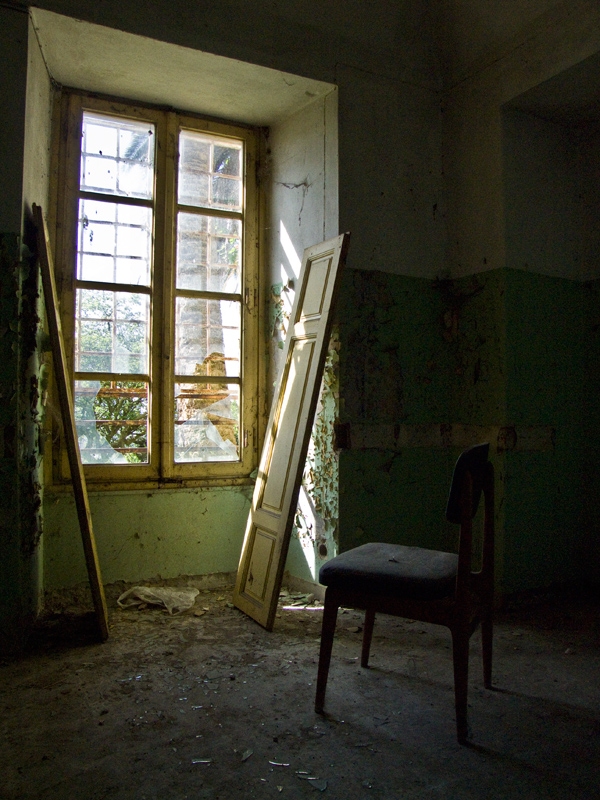 una luce cupa che non da spiegazione se sia di un ricordo bello o brutto, mentre è scontata la sensazione d'abbandono, mi piace come è composta, i vari elementi li trovo posizionati con un certo criterio, rispetti le più elementari regole di composizione, è una foto pensata, ancora da limare qualcosa naturalmente, le linee cadenti della finestra e dell'altra arcata a destra ad esempio si fanno notare, ma nell'insieme la trovo molto interessante e quella sensazione di misterioso le danno molta forza.