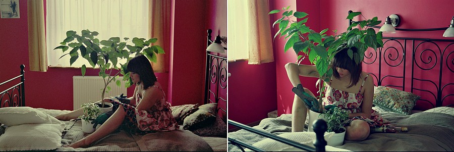 | abbiamo fatto con magda la sessione del giardinaggio sul letto per ottenere la photo dell'assurdo e ottenere le domande come vostre: perche' ? pensavamo sulla idea per le photo e pensavamo... "che cos'e' che non si fa nel letto" ?