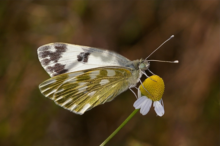 Questa Pieride è femmina per le nervature marroni. Tutto perfetto. Fantastico lo sfondo che appare come la tavolozza di un pittore.