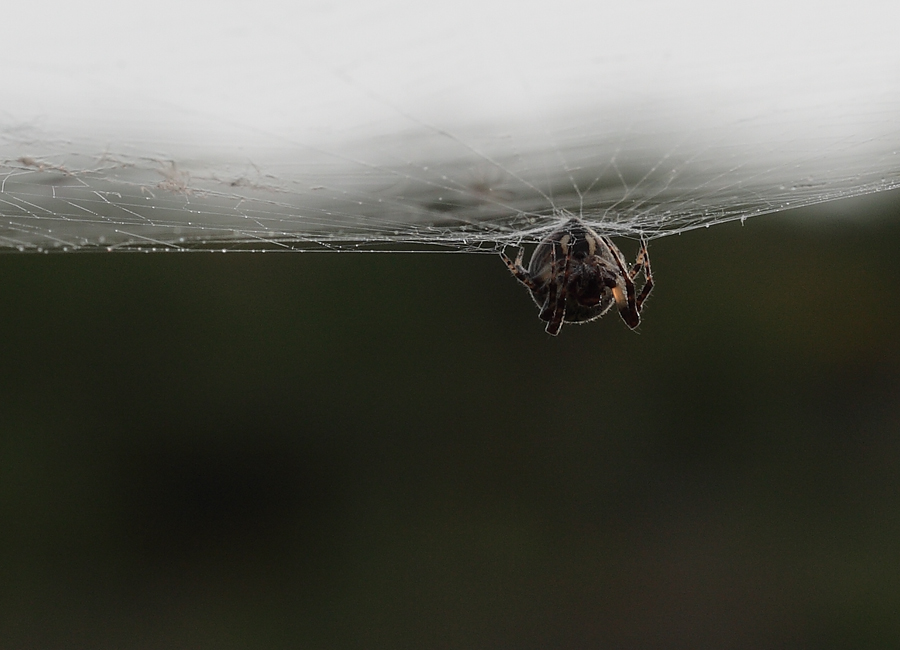 Bella la sospensione alla rete ben maffata nei punti giusti, assieme al ragnetto. Mi piace particolarmente la composizione e il taglio decentrato sullo sfondo uniforme Ok!