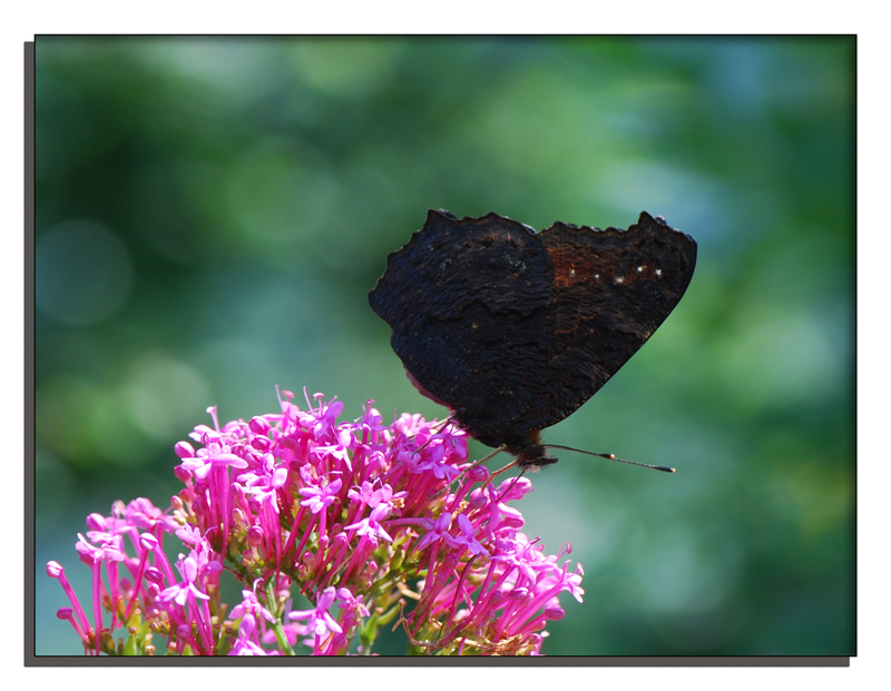 .....qualche consiglio te lo ha dato lilian, in effetti lo sfocato è gradevolissimo, il fiore è abbastanza ben esposto ( un poco alte le luci ) le ali della bella farfa paiono al carboncino Wink credo che non potendo fare ombra visto che dici che un secono scatto non te l'ha fatto fare... direi che l'unica soluzione possibile sarebbe stata bilanciare la luce con un colpettino di flash opportunamente diffuso......