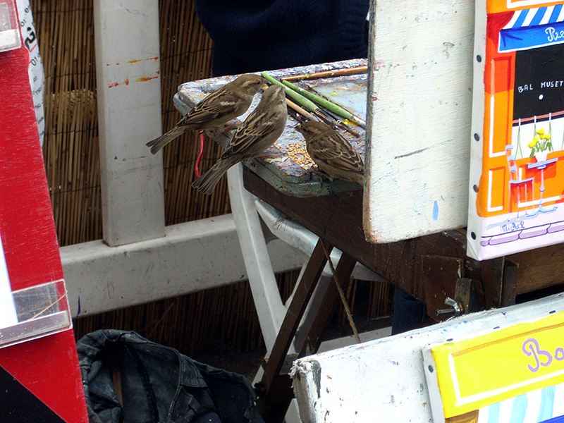 Non è facile trovare una situazione davvero particolare con come protagonisti le persone, con gli animali la difficoltà si moltiplica ulteriormente.. e questo scatto ne è la dimostrazione: hai dovuto includere elementi di disturbo, non potevi avvicinarti, l'esposizione era difficile..e tutto per portare a casa, in fondo... tre passeri, che teoricamente stanno facendo qualcosa di particolare, ma se ci si pensa bene... è davvero così?