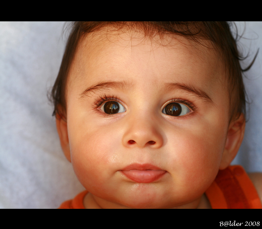 Complimenti prima di tutto per il tuo splendido figliolo e poi per la splendida foto che lo coglie assorto in pensieri forse futuri estasiato dal panorama. Incredibile la nitidezza di questi teneri occhioni, direi disarmanti, e di quella boccuccia forse intenta a "pernacchiare".