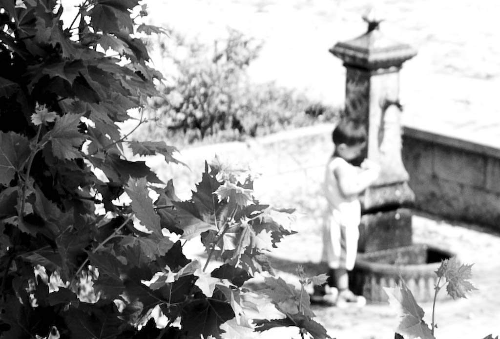 l' unica cosa che sottolineo e' che la quinta formata dal fogliame, fa' pensare al fatto che qualcuno stia spiando il bimbo ignaro da un cespuglio e non dal 5 piano.