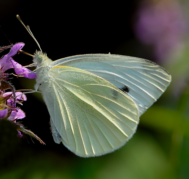 Bellissima la Cavolaia, ripresa a distanza ottimale. Perfette la venature sull' ala in primo piano; colori e sfondo, da manuale.