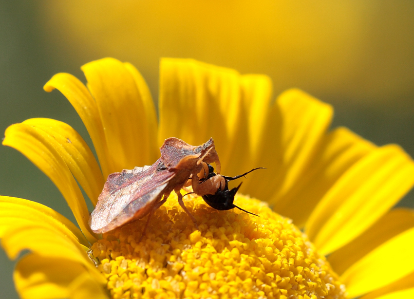 Bella cattura con il rhinocoris iracundus che fa pranzo. Trovo soltanto le luci un pò alte sul dorso dell'insetto. Mi piace. Smile