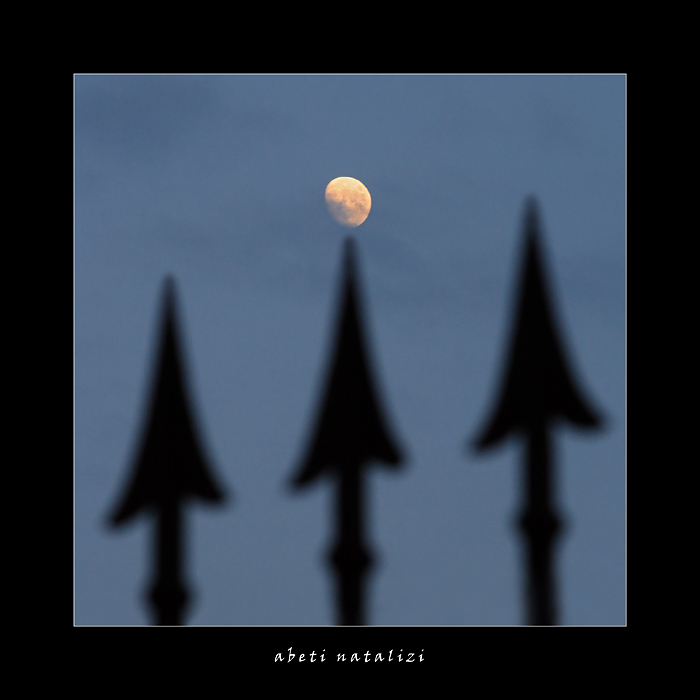 Accostamento valido tra le sagome del cancello e l'astro sul cielo: forse nella compressione è apparso qualche artefatto sul bordo della luna.