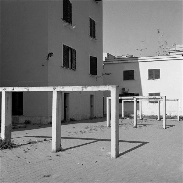 Credo che il tipo di b/n, almeno in questo caso, sia quello che volevo, mentre lavoro sui toni ho l'opportunita' di vedere i vari contrasti, ma cerco quello adeguato alla scena che avevo di fronte, questi sono edifici degli anni 40, un giorno assolato, roba da 32 gradi, silenzio, nessuno in giro, tanto bianco, .....ecco insomma ho tentato di lasciare un po' sgrigiato il tutto, perche' mi sembrava piu' coerente.