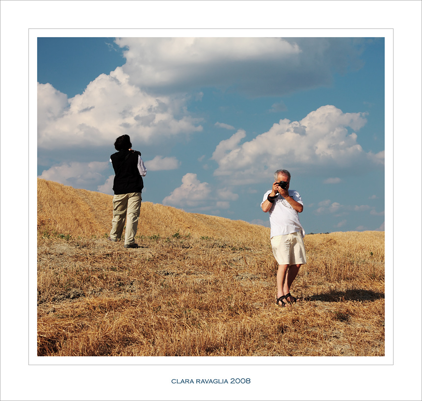 Uno scatto tra amici,senza velleità,una foto ricordo...ma fra le tue mani si trasforma,complice il tuo sottolineare i toni che portano cielo e fieno sulla falsariga dei tuoi paesaggi più belli.