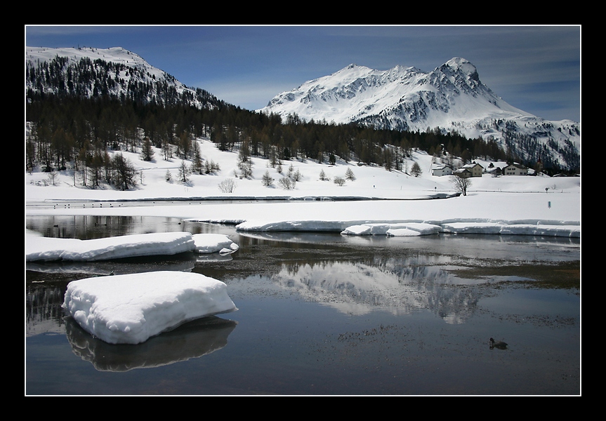 uno scatto molto piacevole, rilassante da vedere con una composizione semplice ed equilibrata. un primo piano ben gestito che sorregge bene il bel panorama.unica cosa forse la luce non era perfetta, vedi neve in primo piano molto chiara e montagna sullo sfondo un po' "opaca"....anche se questo da' forse + profondità...