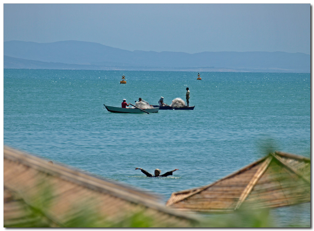 ciao nausicaa, mi è piaciuta l'idea di racchiudere "la vita" nella V formata dai due ombrelloni, peccato per la forte foschia dell'orizzonte.