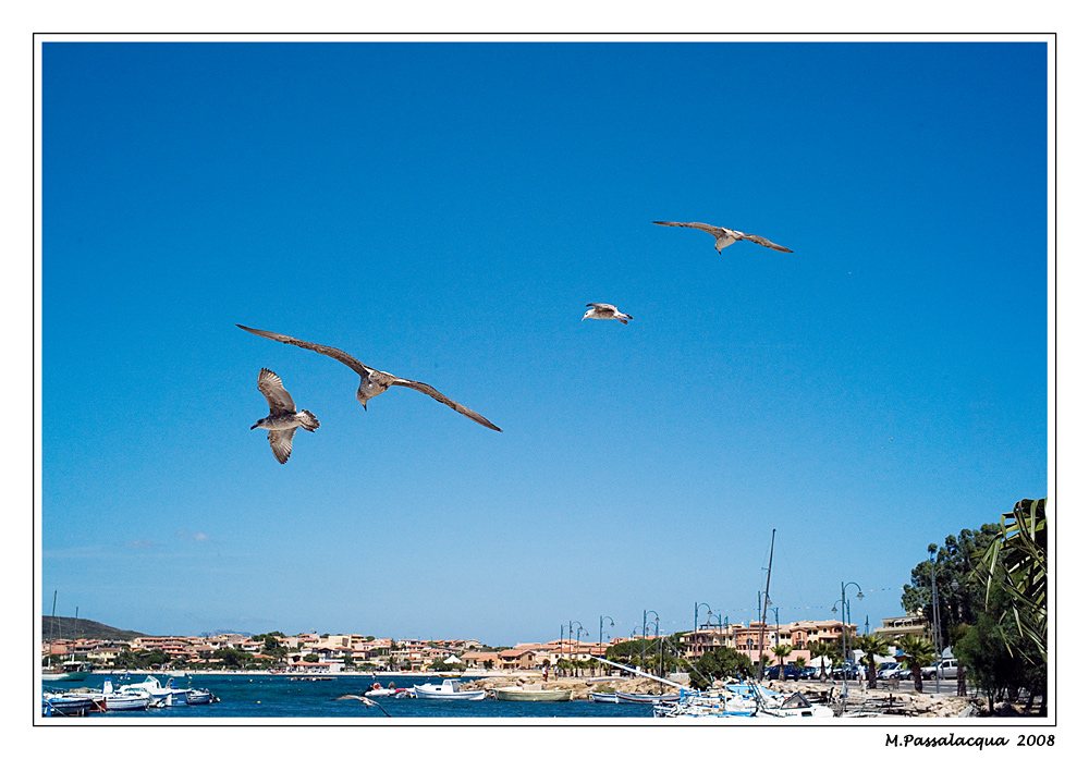 E infatti la sottile striscia di paesaggio che fa da sfondo al volo dei gabbiani è molto importante,in quanto va a completare ottimamente l'immagine.