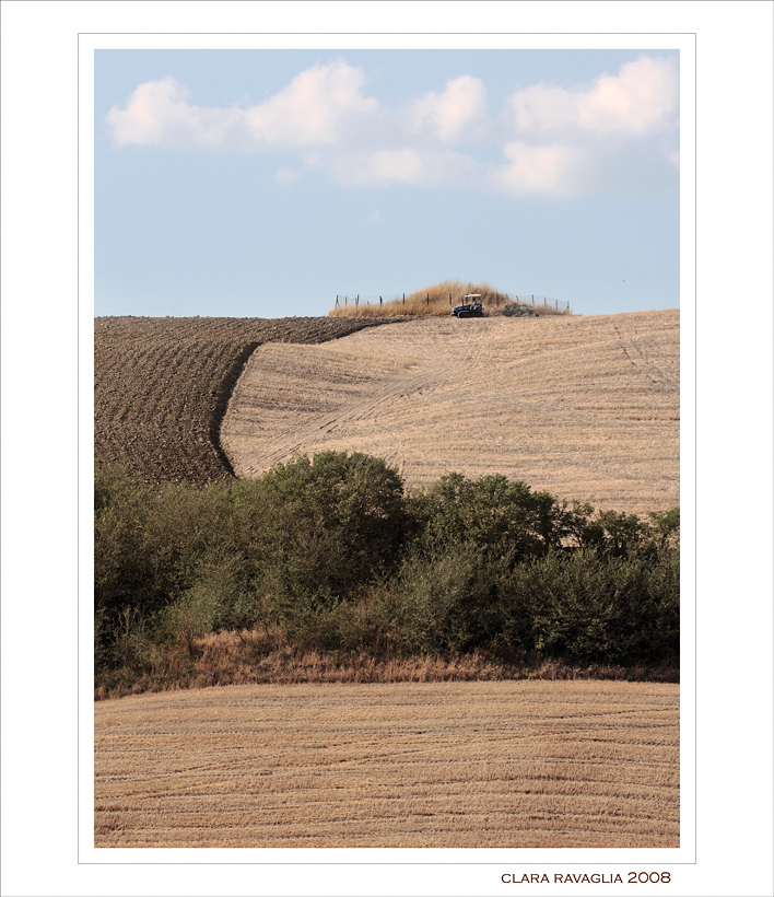 tutta la composizione e in particolare la "montagna" col trattore in alto...