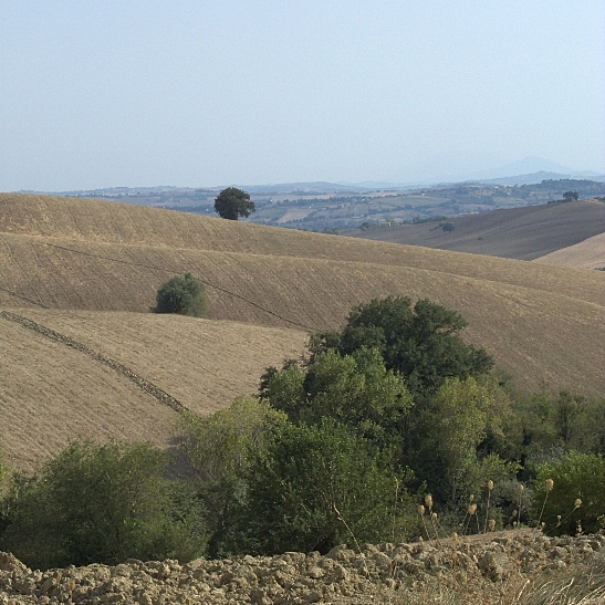 Ciao eidos, vedo che siamo vicini, io sto a Morrovalle. Il tuo scatto manca di una luce un po più favorevole, belle le ondulazioni dei campi meno lo sfondo e il cielo. Visti i colori, sarebbe forse meglio un b/n, con più contrasto e tagliando via il cielo che non ha motivi di interesse. Particolare la tua galleria a cui ho dato un veloce sguardo. Ciao.