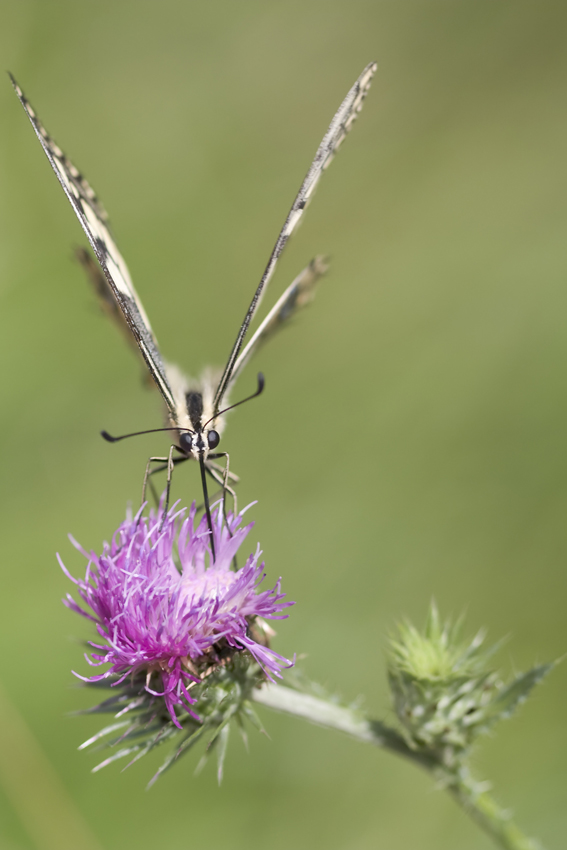 ottima idea, riprendere da questa angolazione la farfalla,... 10 e lode per inventiva,.. 6- per la composizione,... seguendo i consigli che già ti hanno dato, un aggiustatina e la media è più che buona, complimenti Ok!