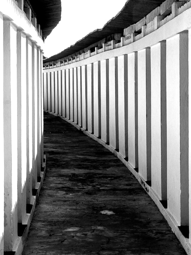 Trovo il bianco che hai ottenuto sul cielo e sulla parte alta del muro a sinistra un po' troppo intenso.. per me, opinione personale, abbaglia un po'.. mentre mi piace il b/n nella regolazione dei toni più scuri, così come il parallelismo che hai ottenuto tra la zona di pavimento più scura e quella bianca del cielo..  _________________ [size=10]Maurizio - Sono Qui Per Imparare.. |