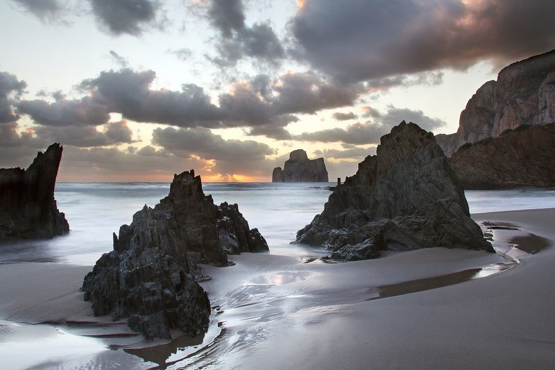 Wow! Splendida foto per splendido posto. Ho provato a tagliare lo scoglio di sinistra che mi pareva disturbare un po' e, pur dovendo tagliare anche una parte di cielo e ritrovandomi con lo scoglio lontano al centro, non mi dispiaceva.