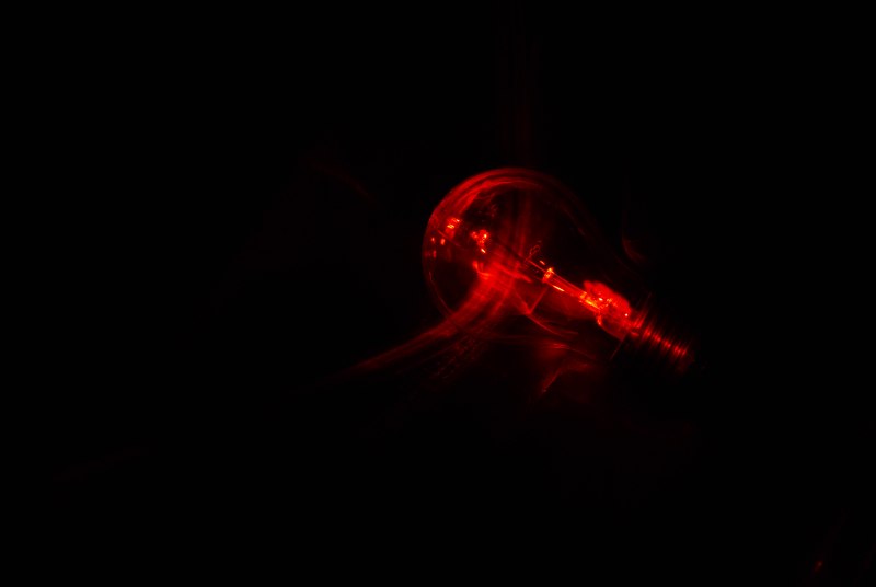 Allora dapprima ho provato ad illuminare la lampadina con un led, ma non mi piaceva, poi la suddetta lampadina mi si è accesa in testa: ho preso un puntatore laser e ho iniziato a giocare a colpire la lampadina e cercare i punti in cui il vetro rifrange il laser. Un po' di prove e questo è il risultato dopo 10 secondi di posa.