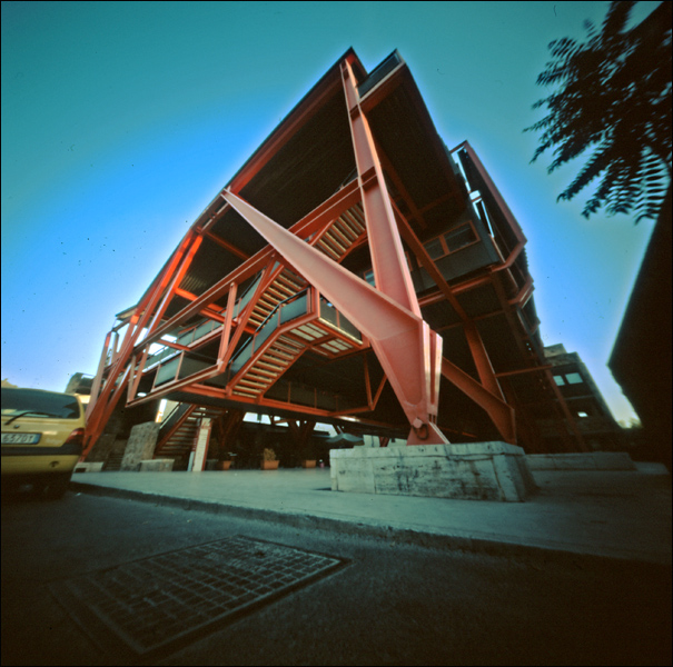 Come altre volte, rimango molto colpito dalla resa dei colori e dell'effetto finale della scena ripresa con questa ''apparecchiatura''.. Mi piace comunque la ripresa più dal basso, che enfatizza lo sviluppo verso l'alto della scena e della struttura metallica..