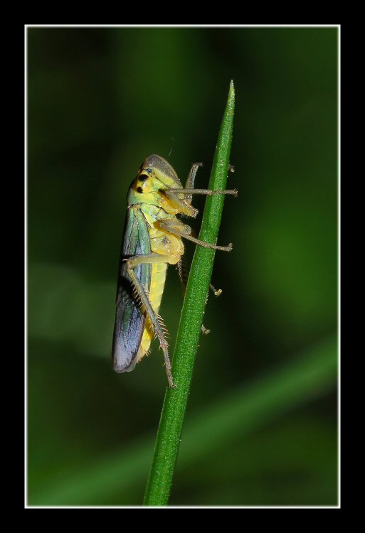 Noto che la maf ti sia andata più sulla coda che sulla testa della cicadella, probabilmente per la mancanza di parallelismo tra il piano focale ed il soggetto. Trovo inoltre degli artefatti sulle tre zampe visibili in alto in corrispondenza del posatoio.
