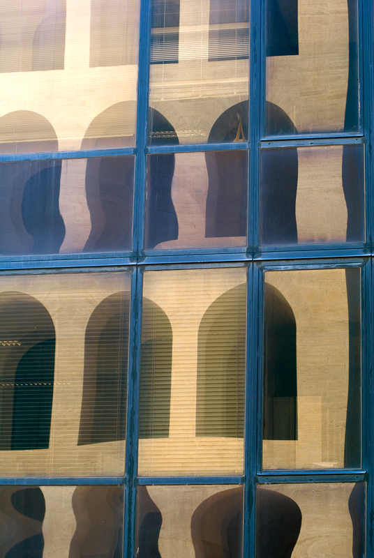 Avrei preferito comunque vedere le linee verticali perfettamente dritte, in modo da tenere l'elemento geometrico più rigoroso possibile rotto e movimentato dagli elementi curvi degli archi e da tutti i riflessi.. Wink
