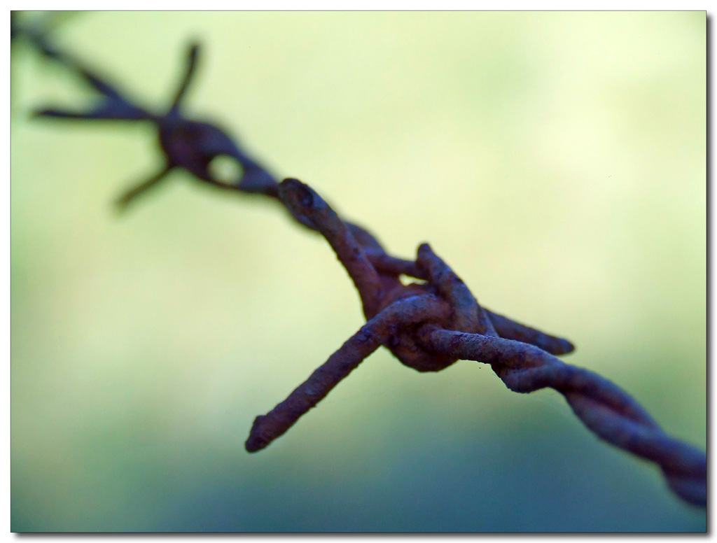 La messa a fuoco non è dove ci si aspetterebbe. Ma lo sfocato è bellissimo e le tonalità di colori davvero speciali. Bello anche il fatto che il filo spinato attraversi la foto in quel modo. _________________ http://www.flickr.com/photos/morganamor |