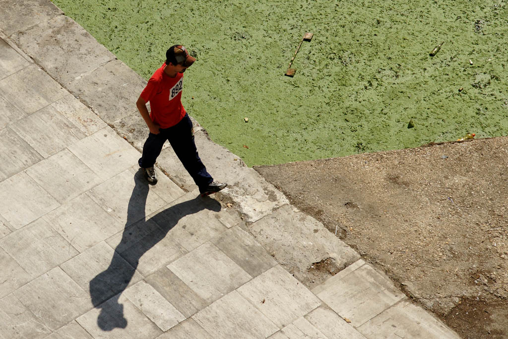 Raduno NSF a Roma, mi affaccio al ponte nei pressi dell'Ospedale Fate Bene Fratelli e resto disgustato dall'acqua fetida e verdastra... poi noto un ragazzo con una maglia rossa... poi noto le diagonali che si creano... e quindi scatto! Che ne dite?
