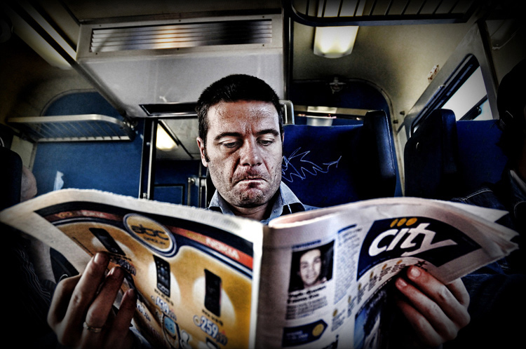 Il soggetto credo che sia perfettamente conscio di essere fotografato, anche se apparentemente la sua attenzione è concentrata solo sulle pagine del giornale.
