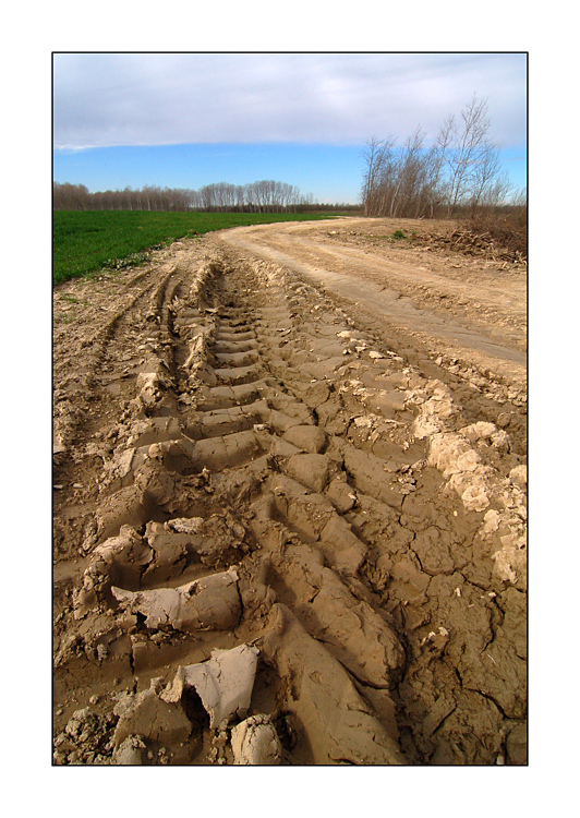 Una bella orma di trattore che trasporta lo sguardo in avanti..., colori naturali e ben dosati. Il grandangolo ha un po distorto gli alberi sullo sfondo ma è un piccolo particolare. Ciao. _________________ Paolo |