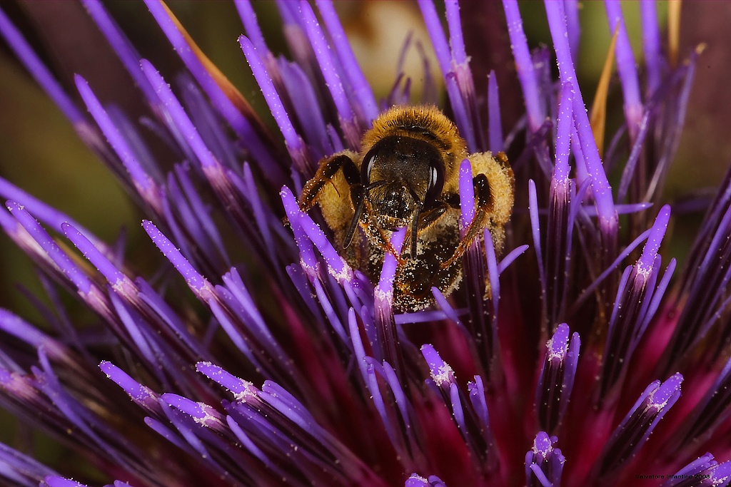 Un grande bagno nel polline e un grande scatto! Come sempre i tuoi ingrandimenti sono meravigliosi e qui hai aggiunto anche la bellezza creata dai pistilli che creano deliziose geometrie! colori e nitidezza da spettacolo! Bravissimo Salva!  _________________ Massimo |