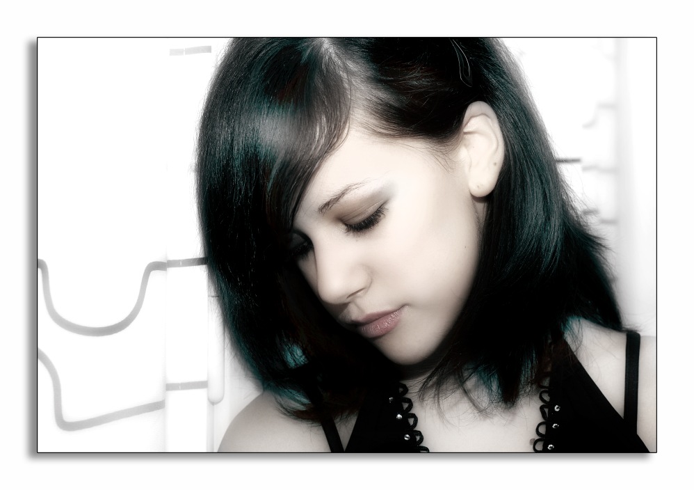 Sono leggermente perplesso per lo strano alone verde nelle zone di transito di chiaro scuro... La scermatura sulla pelle e sullo sfondo non mi dispiacciono, ma avrei preferito mantenere dettaglio e colore naturale su tutta l'immagine.