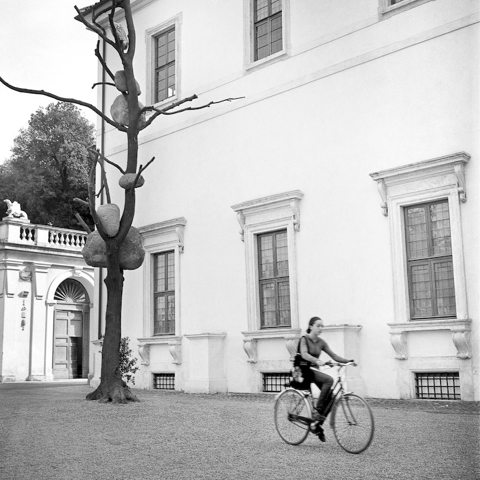 secondo me nell'originale il cervello legge prima l'abero con le pietre (che inoltre sta nel posto del protagonista) e poi vede la bicicletta mossa.