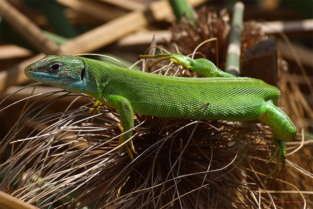 Lo sapevi che i ramarri se ti saltano addosso nn si staccano più? perchè hanno le unghie con la forma dell'amo ..questo ha una bella livrea colorata ,ma quando vanno in amore la testa diventa completamente azzurra...sono davvero bellissimi a vedersi , complimenti per la bella ripresa , ciaoo