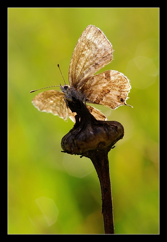 Bellissimo controluce. La contrapposizione dei colori e la luce filtrata dalle ali, fa passare in secondo piano la sfocatura di una parte del soggetto.