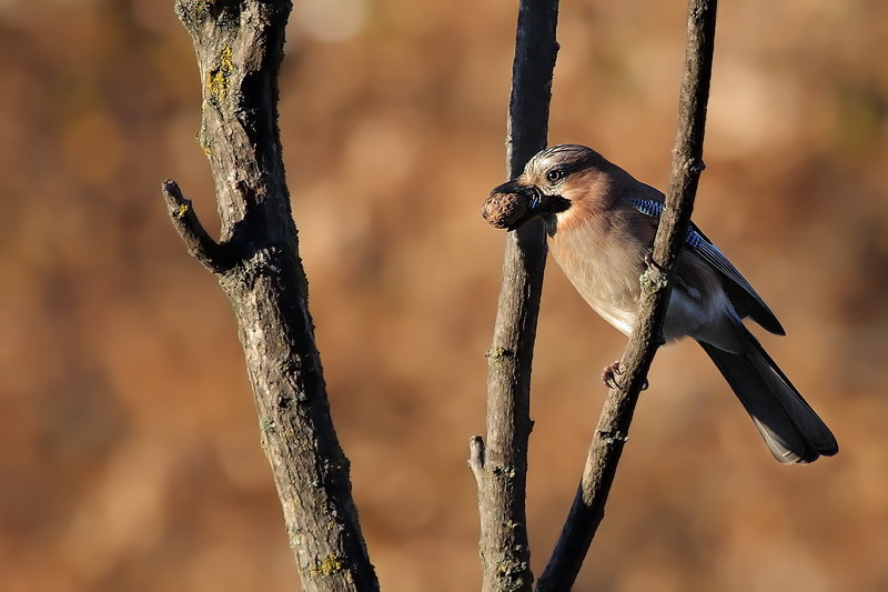Non si dovrebbero guardare nella versione normale, ma solo a 1200. Immagine veramente bella con una resa cromatica gradevolissima. Una sinfonia di marroni tra lo sfondo ben sfocato, i rami ed il piumaggio interrotto qua e là da picchiettature azzurre. Bravo per il "tutto a fuoco".