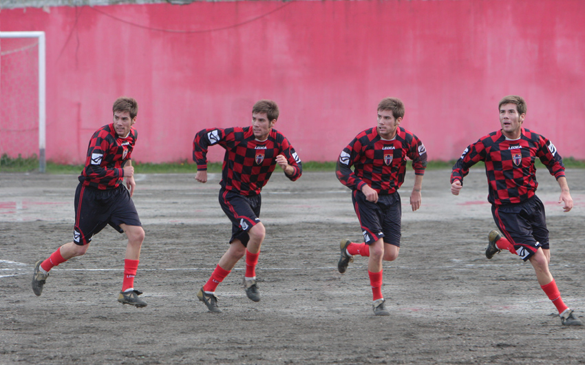 il calciatore correva in diagonale ed è stato ripreso con una raffica di scatti.. l'originale è quello di centro..