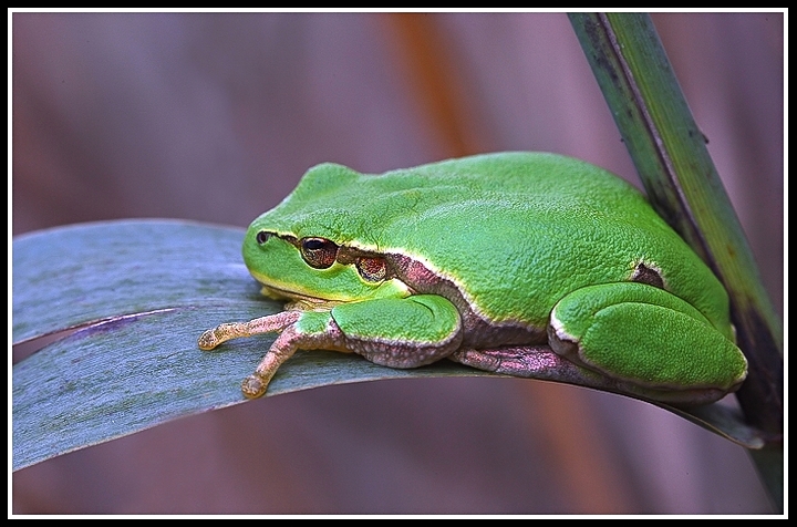 Troppo bella. Questa volta ti sei avvicinato di più e la raganella si evidenzia e riempie la scena. Gli elementi compositivi, curati e precisi, fanno da giusto corollario a questo bell'esemplare. I colori dello sfondo e del posatoio sono decisamente originali e poco visti. Bravo per la gestione della luce.