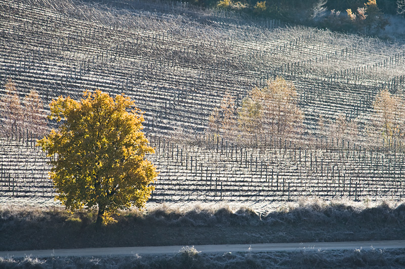 A me personalmente sarebbe piaciuto un taglio ancor più deciso, magari quadrato, intorno ai due alberelli attualmente a dx, eliminando del tutto la strada in basso: solo i due alberelli e il vigneto intorno!