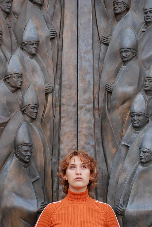 Se non sbaglio quella dello sfondo è una delle porte della Cattedrale di Viterbo. Mi aveva molto impressionato tanto da fare uno scatto simile al tuo ma senza ragazza.