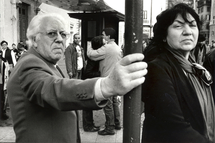 | La scena è azzeccatissima. Peccato per i capelli del vecchio e parte dello sfondo sulla destra, un po' sovraesposti, e forse avrei spostato la fotocamera a destra per non tagliare così tanto la signora. Ma è molto street, molto molto interessante, è difficile riuscire a fare scatti autentici in momenti del genere. |