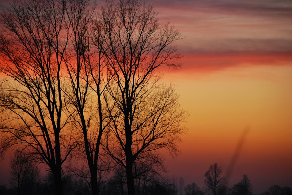 I colori dello sfondo del tramonto sarebbero molto belli. Ma gli alberi in primo piano non sembrano a fuoco e gli mancano le punte. Puoi facilmente migliorarla un po' con aggiunta di maschera di contrasto. Ciao Tiziano