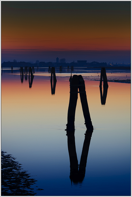 Cielo troppo scuro, sembra quasi facente parte di un altro paesaggio (vedi riflesso). Compositivamente avrei preferito il paletto a sinistra in modo tale da avere il secondo poco dopo il centro sulla destra, messo cosí assume una posizione ibrida che non mi convince.