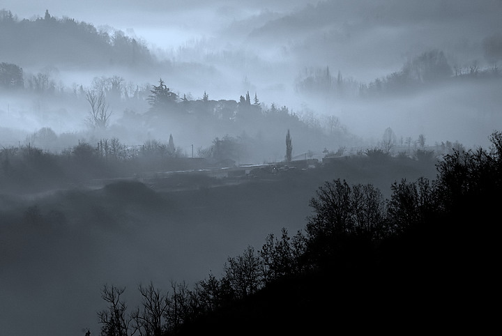 molto bello il suseguirsi di queste onde oscure che sfumano nella nebbia.