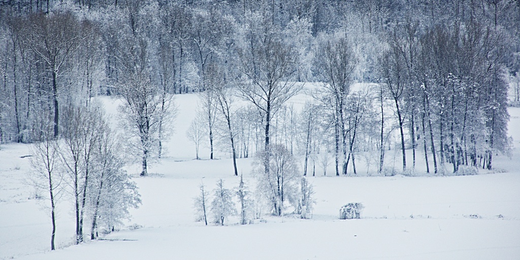 Paesaggio dal vivo sicuramente gradevole, che però in foto risulta ovattato, chiuso, con un poco respiro che sembra più una conseguenza del taglio che una scelta espressiva (penso alla compressione delle distanze dovuta alla focale, o all'inclusione di quel gioco di alberi ortogonali in primo piano che sembra più un divertissement della natura, poco bilanciato com'è dalla noiosa regolarità degli alberi sullo sfondo).