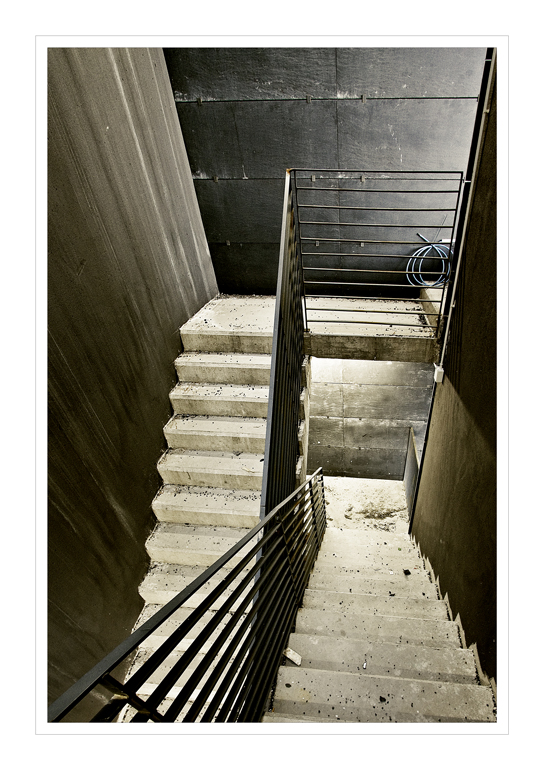Ti dico la verità: rapito dall'effetto ottico della struttura già dall'anteprima, mi ero bloccato nel guardare come la convergenza delle linee e la prospettiva creata da scalini e corrimano fosse così particolare che insieme al dislivello dei piani compositivi della scena, l'occhio si perda alla ricerca del reale sali scendi che gli elementi creano..