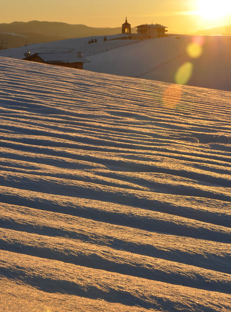 Il flare l'hai sfruttato molto bene (che obiettivo hai usato), mi piace anche come la luce modella la neve e come sono stati resi i vari piani dell'immagine, in definitiva un gran bello scatto (senza il tetto sulla sinistra mi sarebbe piaciuto ancora di più) Ok!