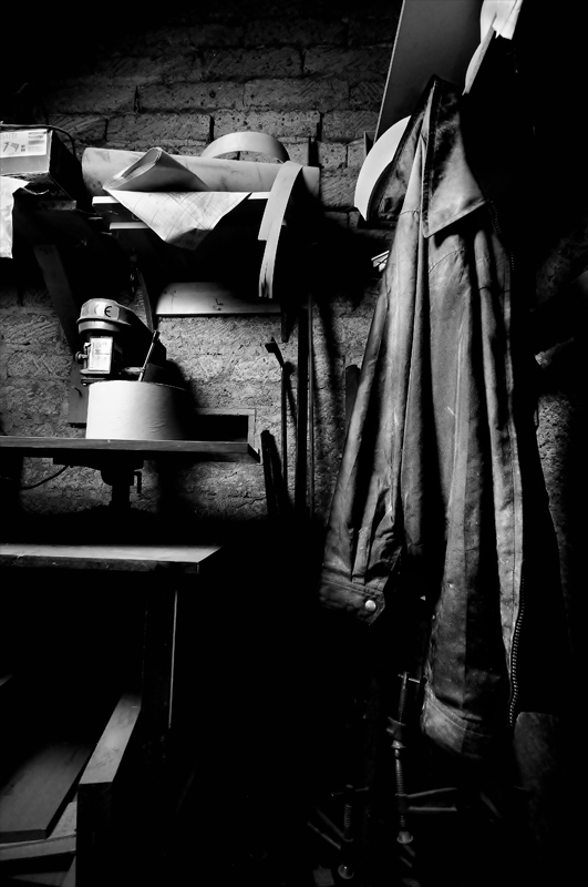 Per come è composta, più che dare enfasi al capo d'abbigliamento, si valorizza, a mio avviso efficacemente, il contesto quotidiano di un artigiano: in ogni caso la scena riesce ad essere efficace proprio per la giusta luce, che la attraversa.