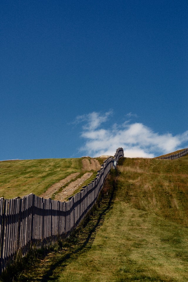 Molto bella questa staccionata che guida lo sguardo fino all'infinito, belli i colori. Personalmente vedrei meglio un taglio quadrato con un poco meno di cielo  |