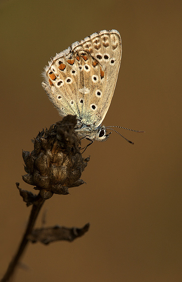 In contrapposizione al posatoio scuro emerge questo gioiellino con quelle antenne così ben riprese. E' veramente vezzosa.