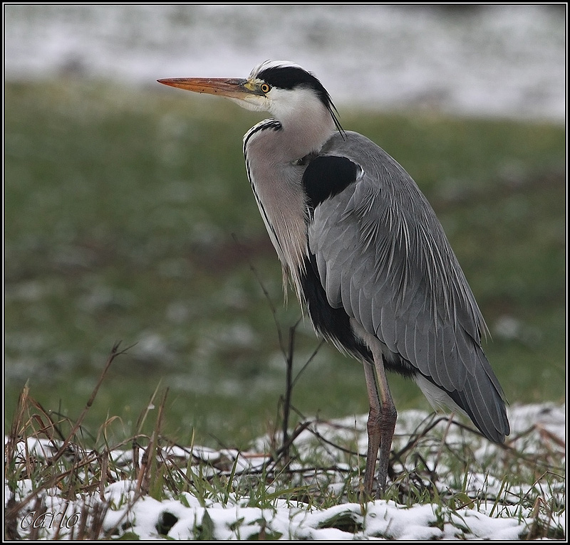 grazie x l'intervento , in genere non è mia abitudine stravolgere l'immagine con interventi drastici la striscia bianca è una conseguenza della nevicata ,fà parte del contesto del paesaggio dove è immerso il soggetto , inoltre l'airone riesce a staccarsi molto bene dallo sfondo in modo da non legare con il bianco x la staticità era difficile a -8° trovare un certo dinamismo